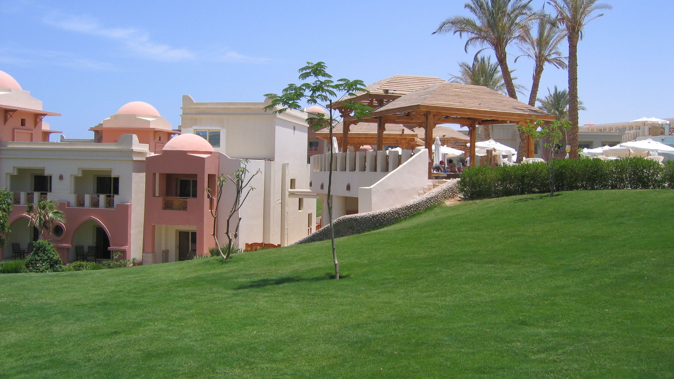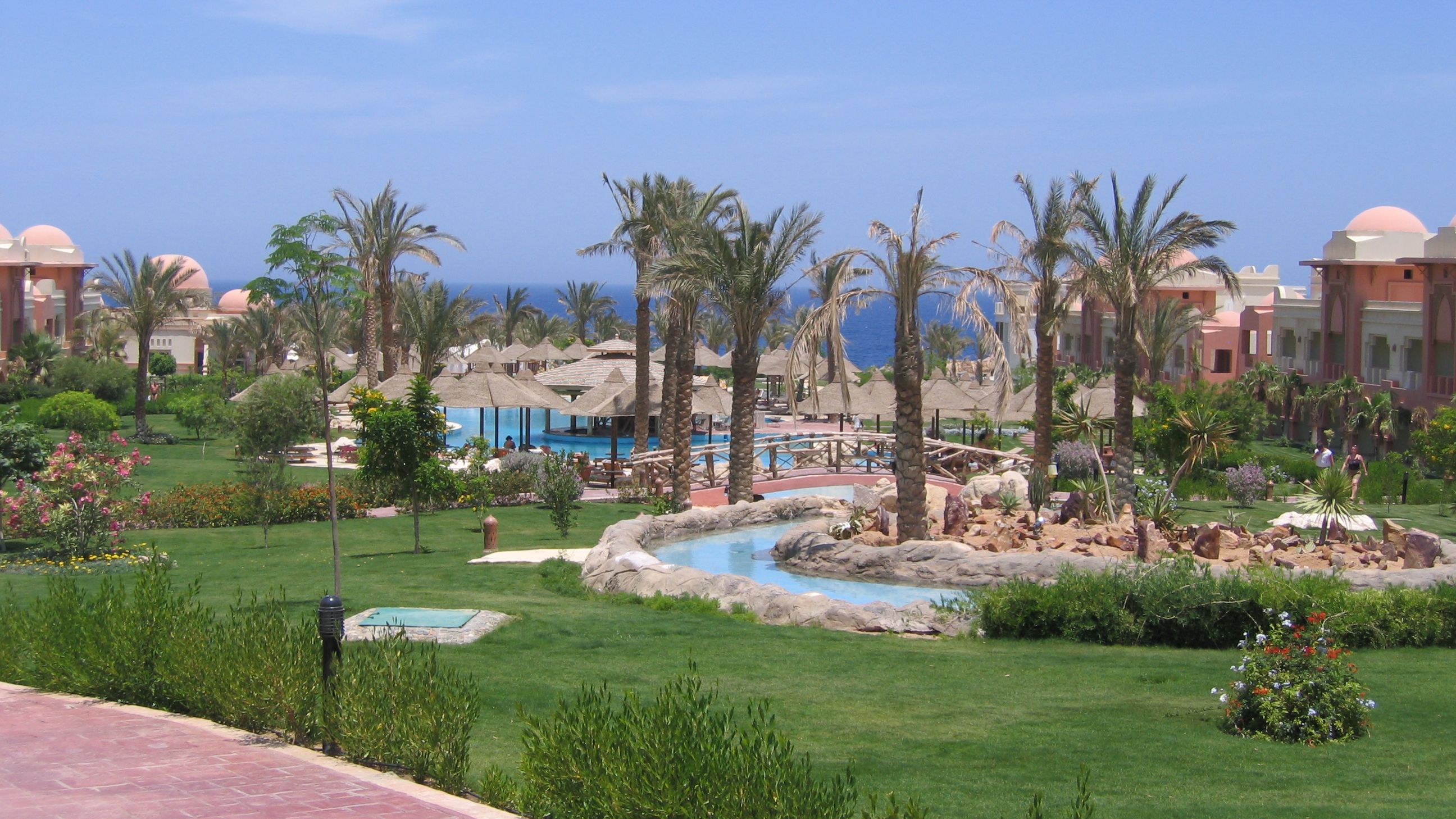 В этом отеле мы отдыхали в мае 2009 года. Он находится в 36 км. от аэропорта г. Хургады. Большой по площади, много зелени, красивая планировка, здания расположены в несколько рядов, есть несколько бассейнов. Питание однообразное, салаты и фрукты не свежие. Отель находиться на берегу красного моря. Выход в море через понтон. Много красивых кораллов и разнообразных рыбок. Хорошо плавать с маской и ластами. Отель хорош для семейного спокойного отдыха и подводного плавания! В номерах исправно работают кондиционеры, комнаты большие и удобные.